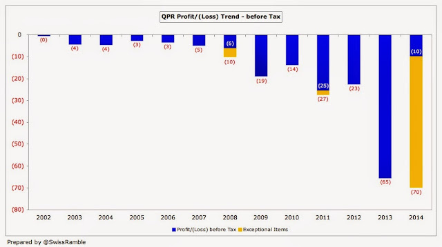 On the same theme, QPR’s reported £25 million loss in the