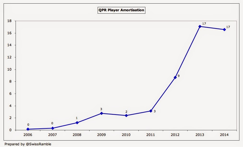 while player amortisation fell by just £0.5 million. In fact, the main reason
