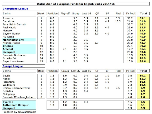 Along the same lines, Chelsea and Tottenham would have to pay £10-15 million a